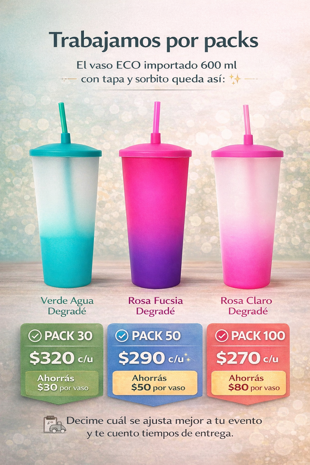 👉 En el pack de 100 ahorrás $80 por vaso comparado con el pack chico.